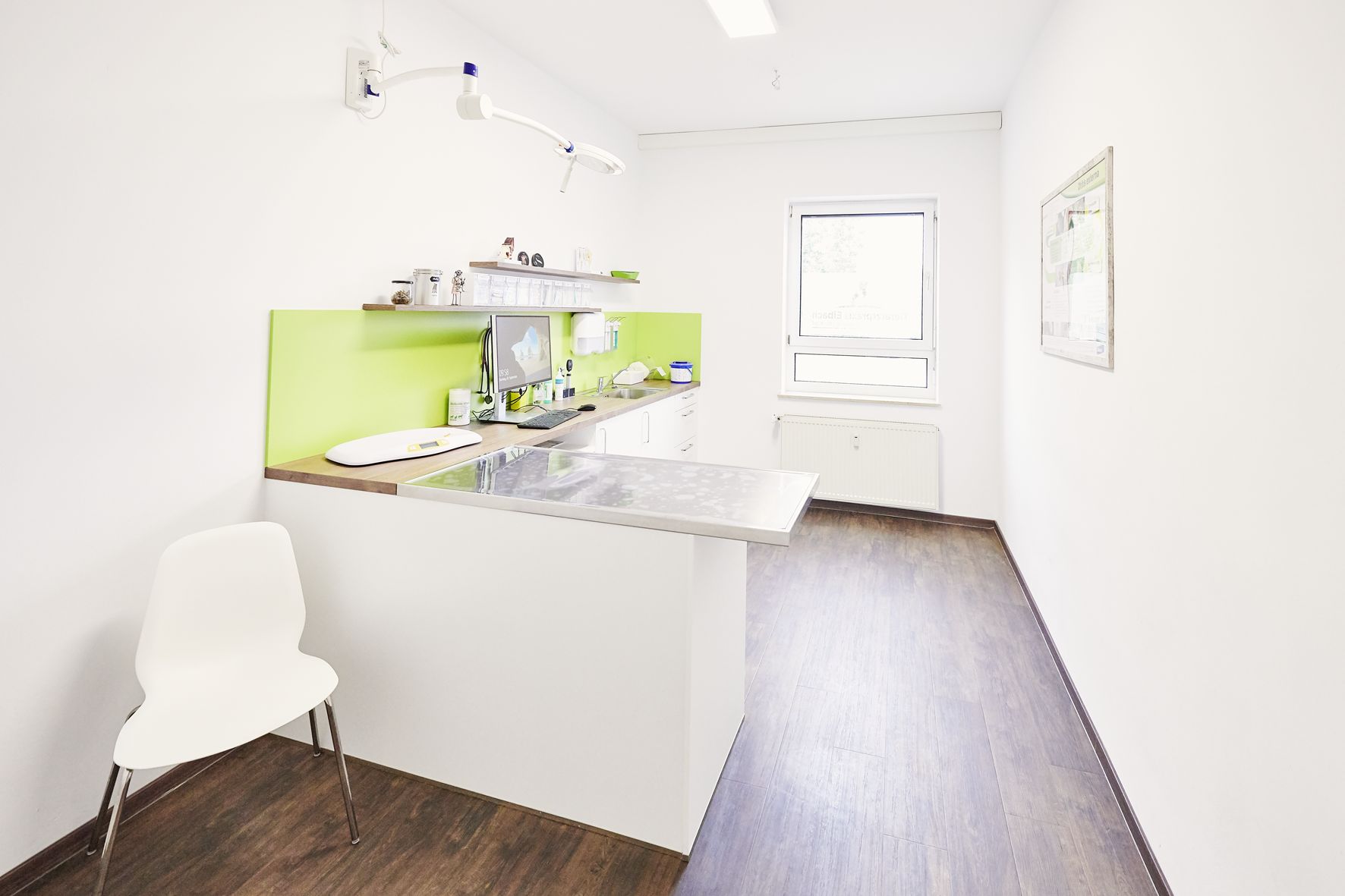 Im Erdgeschoss befinden sich vier Sprechzimmer, ein großzügiger Wartebereich, eine Anmeldung sowie eine gut ausgestattete Operationsvorbereitung und zwei Operationssäle. Zudem stehen zwei Stationen, eine Apotheke, ein Röntgenraum und ein Inhouse-Labor von Idexx zur Verfügung. Der Sozialraum mit Küche, Umkleiden, Lager und Badezimmer mit Dusche sorgt für das Wohl unserer Mitarbeitenden. Ein modernes Ultraschallgerät für Kardio und Innere sowie digitales Röntgen ergänzen unsere Ausstattung. Im ersten Stock befinden sich die Büroräume der Praxismanager, während im zweiten Stock derzeit drei Zahneinheiten und Operationssäle entstehen.